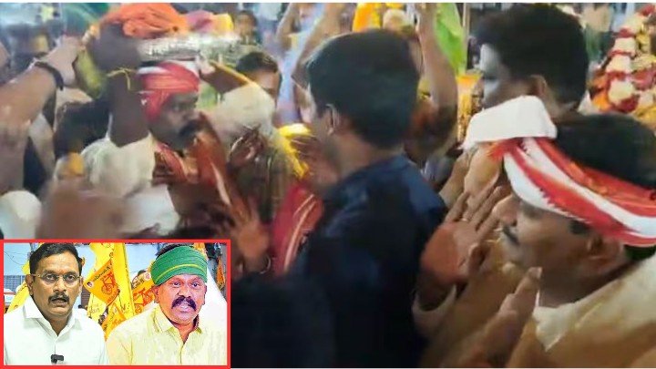 బ్రహ్మోత్సవాల్లో భగ్గుమన్న రాజకీయాలు.. కొలికపూడి–చిన్ని మధ్య ఆలయ ప్రాంగణంలో ఉద్రిక్తత (Video)