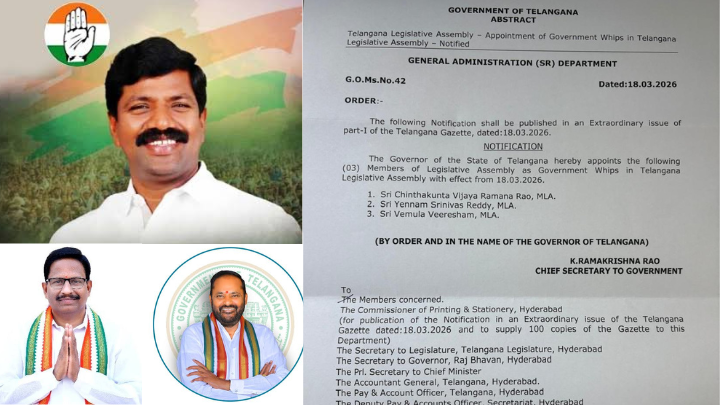 తెలంగాణ రాష్ట్ర శాసనసభలో (Telangana State Legislative Assembly) ప్రభుత్వ పనితీరును మరింత సమర్థవంతంగా నడిపించేందుకు ప్రభుత్వం కీలక నిర్ణయం తీసుకుంది. అసెంబ్లీ విప్లుగా (Assembly Whips) ముగ్గురు ఎమ్మెల్యేలను (Three MLAs) ...