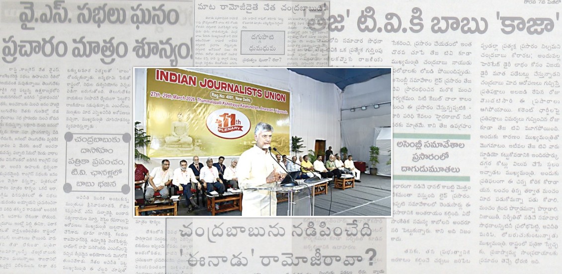 విజయవాడ (Vijayawada) తుమ్మలపల్లి కళాక్షేత్రంలో (Tummalapalli Kalakshetram) ఇండియన్ జర్నలిస్ట్ యూనియన్ (ఐజెయు) (Indian Journalists Union – IJU) 11వ ప్లీనరీని (11th Plenary ప్రారంభించిన సందర్భంగా ముఖ్యమంత్రి నారా చంద్రబాబు నాయుడు (Nara Chandrababu Naidu) చేసిన వ్యాఖ్యలు రాజకీయ వర్గాల్లోనే కాకుండా ప్రజల్లోనూ విస్తృత చర్చకు దారి తీసాయి. రాజకీయ నాయకులు సొంత మీడియాను కలిగి ఉండటం ప్రజాస్వామ్యానికి అనుకూలం కాదని ఆయన పేర్కొనడం అనేక అనుమానాలకు తావిస్తోంది.