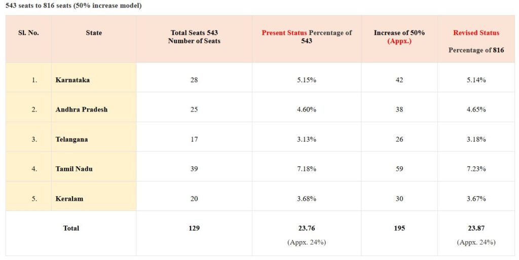 ప్రస్తుతం దక్షిణ రాష్ట్రాలకు కలిపి ఉన్న 129 స్థానాలు, ఈ పెంపు తర్వాత 195కు చేరుకుంటాయని ఆయన వివరించారు. మొత్తం శాతంలో ఈ రాష్ట్రాల వాటా దాదాపు 24 శాతంగా కొనసాగుతుందని తెలిపారు. ఇది ప్రాతినిధ్యం తగ్గడం కాదని, వాస్తవానికి సంఖ్యాపరంగా పెరుగుదలేనని ఆయన పేర్కొన్నారు.