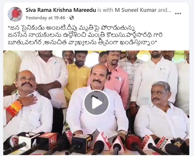 ఈ ఘటనలో మంత్రి కొలుసు పార్ధసారధి వ్యాఖ్యలను బహిరంగంగా ఖండించిన మరీదు శివరామకృష్ణ, పార్టీ ధర్మాన్ని ఉల్లంఘించారని పేర్కొంటూ చర్యలు తీసుకున్నట్టు జనసేన కేంద్ర కార్యాలయం ప్రకటించింది. ఇకపై వారి కార్యక్రమాలకు పార్టీకి ఎటువంటి సంబంధం లేదని స్పష్టం చేసింది.